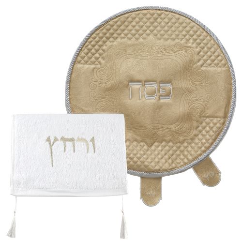 סט כיסוי פסח מהודר דמוי עור עם רקמה ומגבת 45 ס"מ