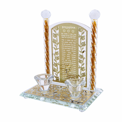 פמוטי קריסטל מהממים+ הדלקת נרות "רימונים" זהב