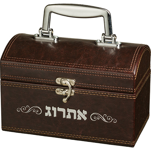 קופסא מהודרת לאתרוג דמוי עור עם ידית ומנעול 13X19