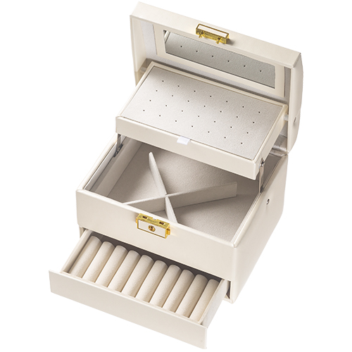 קופסא מהודרת לתכשיטים 3 קומות עם הדפסה זהב – 12*14*18 ס"מ