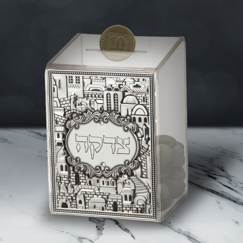 קופת צדקה פרספקס עם פלקטה "ירושלים" 11×8 ס"מ
