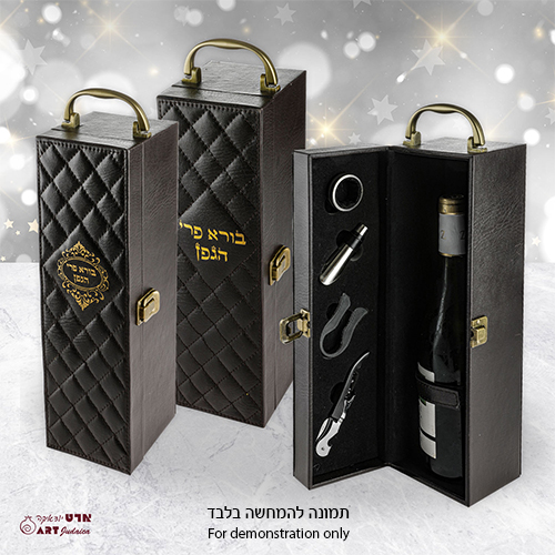 תיבה דמוי עור ועץ לבקבוק יין כולל סט אביזרים